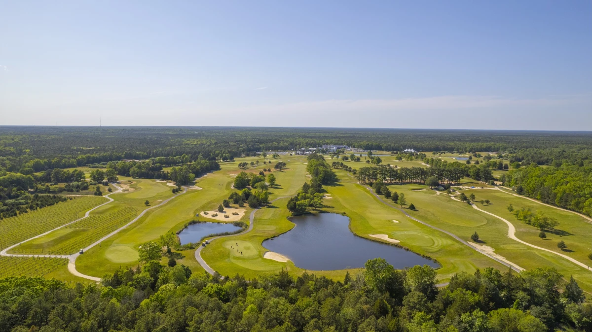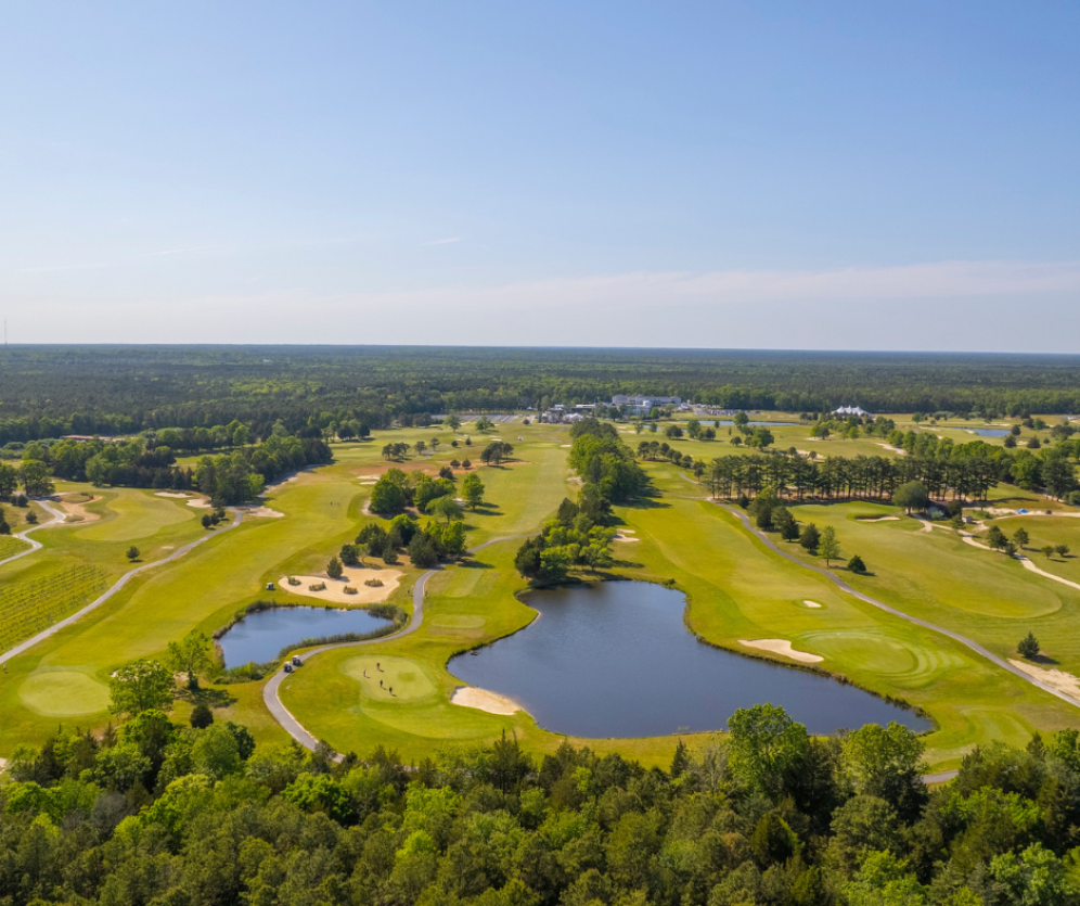 Nur wenige Minuten außerhalb von Atlantic City, in Galloway, liegt eine der bekanntesten Anlagen der Region. Auf rund 271 Hektar erwarten dich zwei Championship Plätze sowie ein Hotel mit 296 Zimmern. Der Bay Course aus dem Jahr 1914 ist geprägt von Küstenblicken, klassischen Bunkerlandschaften und einem Spiel, das Präzision verlangt. Hier wird auch die ShopRite LPGA Classic ausgetragen. Der Pines Course führt durch bewaldetes Gelände mit abwechslungsreichen Spielbahnen, leichten Höhenunterschieden und großzügigen Grüns. Zwei Plätze, die sich ideal kombinieren lassen und für Abwechslung sorgen.