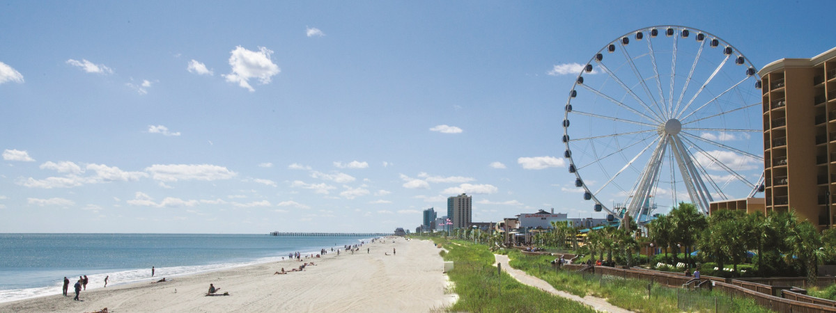 Top Freizeitmix: Eine 100 km lange Küstenregion, auch ‚Grand Strand’ genannt. Hier gibt es kilometerlange sonnenverwöhnte Strände, Attraktionen und Vergnügungsparks für die ganze Familie, dazu über 80 Golfplätze für jedes Können und Budget.