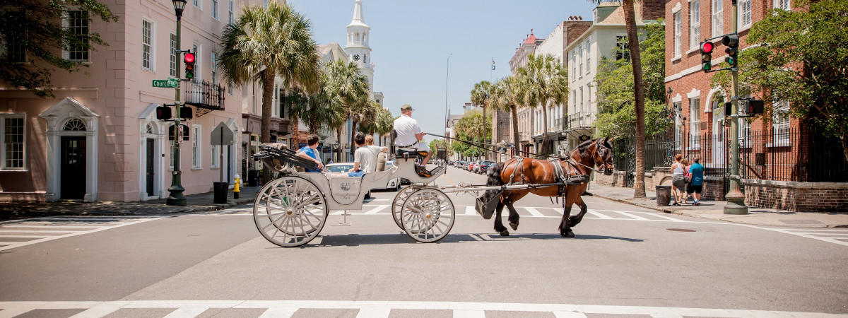 Wie Perlen an einer Kette reihen sich die liebevoll erhaltenen viktorianischen und kolonialen Prachtbauten aneinander. Kunstvoll angelegte Gärten unterstreichen die Schönheit prächtiger jahrhundertealter Gebäude. Ein Bummel zu Fuß oder eine Kutschfahrt durch den Historic District vermitteln intensive Eindrücke. Charleston Carriage Ride Charleston The Battery Charleston The Battery
