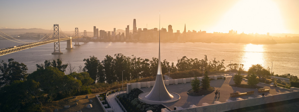 Auf Yerba Buena Island, einer felsigen Insel in der Bucht von San Francisco, entstehen derzeit eine Reihe neuer Grünflächen und Picknickplätze, die schöne Panoramablicke auf Alcatraz, die Skyline San Franciscos, die East Bay und die San Francisco-Oakland Bay Bridge, die direkt auf die Insel führt, bieten.