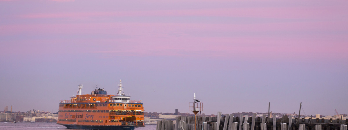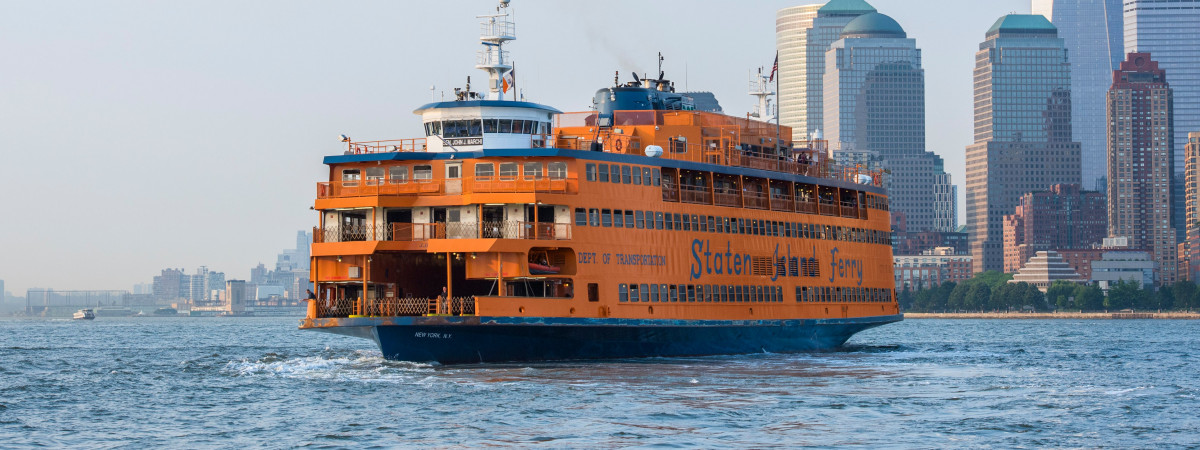 Zwei Fährverbindungen verbinden Manhattan und Staten Island. Es gibt eine kostenlose Fähre vom Whitehall Ferry Terminal in Lower Manhattan (R-Zug nach Whitehall, die 4 oder 5 nach Bowling Green oder die 1 nach South Ferry), oder man nimmt eine NYC Ferry (2,75 $) von einem der beiden Abfahrtsorte in Manhattan: Midtown West/Pier 79 (in der Nähe der West 39th Street) und Battery Park City (hier folgt man der Vesey Street nach Westen zum Fluss in Lower Manhattan). Beide Fähren legen am St. George-Terminal auf der Seite von Staten Island an. Von dort ist es nur ein kurzer Spaziergang zum Einkaufszentrum Empire Outlets, zum St. George Theatre und zum Baseballstadion der FerryHawks.