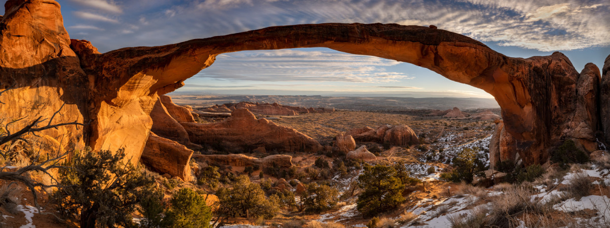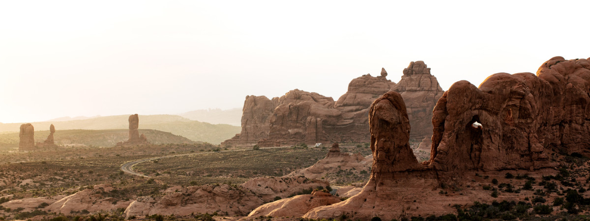 - Highlights: Window Section mit North & South Window sowie Turret Arch, Balanced Rock, Double Arch, Courthouse Towers und viele weitere, die Besucher auf dem Arches Scenic Drive (Panoramastraße durch den Park) und kleinen Wanderungen besichtigen können.