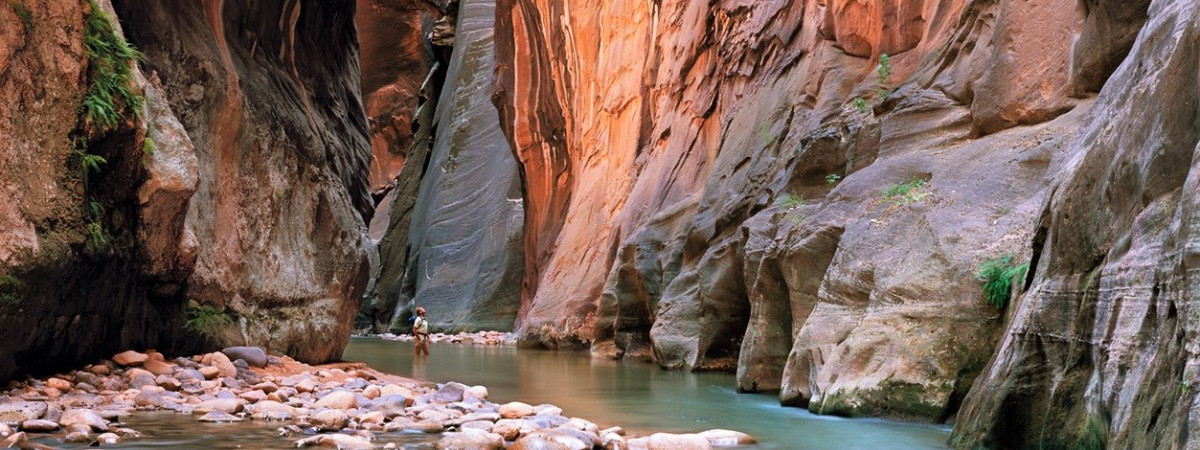 - Wanderung im knöchel-, knie- oder teilweise hüfthohem Flussbett vom Virgin River, den sogenannten "Narrows", im Zion Nationalpark