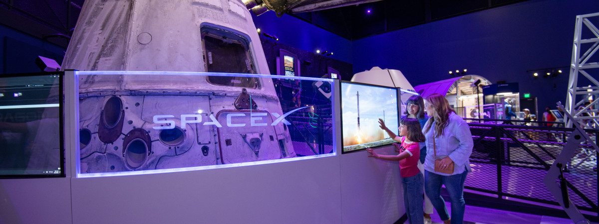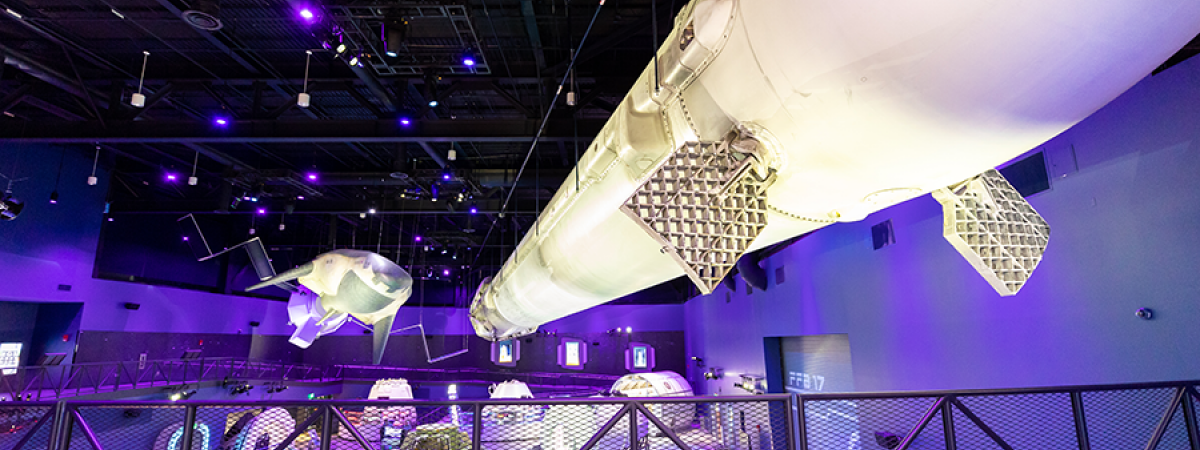 As well as offering a “nose-to-nose” view of the SpaceX Falcon 9 booster, Gateway's second floor features a 30-foot, floor-to-ceiling Robotic Trail Blazers Wall with interactive touchscreen displays through which guests can learn about almost 40 different satellites and probes in space. Also, in this area will be a HoloTube presentation station where guests can learn about the high-powered James Webb Space Telescope by manipulating holographic imagery, video, and animation through a touchscreen kiosk.