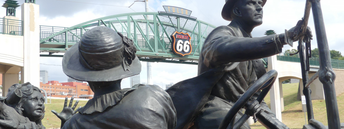 In letzterem, einem Ford Model T von 1926, sitzt die Familie von Cyrus Avery, einem der beiden „Erfinder“ der Route 66, mit Frau, Tochter und Hauskatze. Sie begegnen bei ihrer Fahrt auf der Route 66 der Kutsche eines Ölfeld-Arbeiters, dessen Pferdegespann erschreckt vom Lärm des Autos scheut. Etwa 1000 einzelne Bronzeteile wurden zu dieser Gesamtszene verschmolzen, deren Vollendung sechs Jahre in Anspruch nahm. Schöpfer der Skulpturengruppe ist Robert Temple Summers II (*1940) aus Cleburne, Texas. Er ist bekannt für großformatige Bronzen und -gruppen, z.B. auch im Dallas Pioneer Park oder am Los Angeles International Airport.