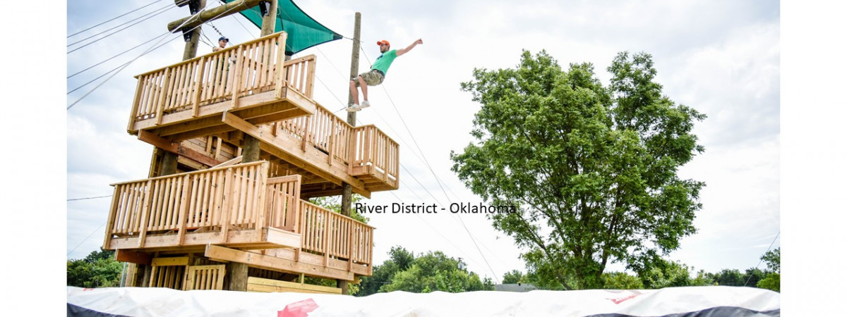 Riversport Adventure Park at Boathouse District in Oklahoma City. Abgesehen von diversen Vergnügungen auf dem Land – wie den SandRidge Sky Trail – kann man sich im Riversport Rapids Whitewater Rafting & Kayaking Center Boote ausleihen und ins kühle Wasser stürzen – je nach Vorkenntnissen in wildere oder sanftere Gewässer.