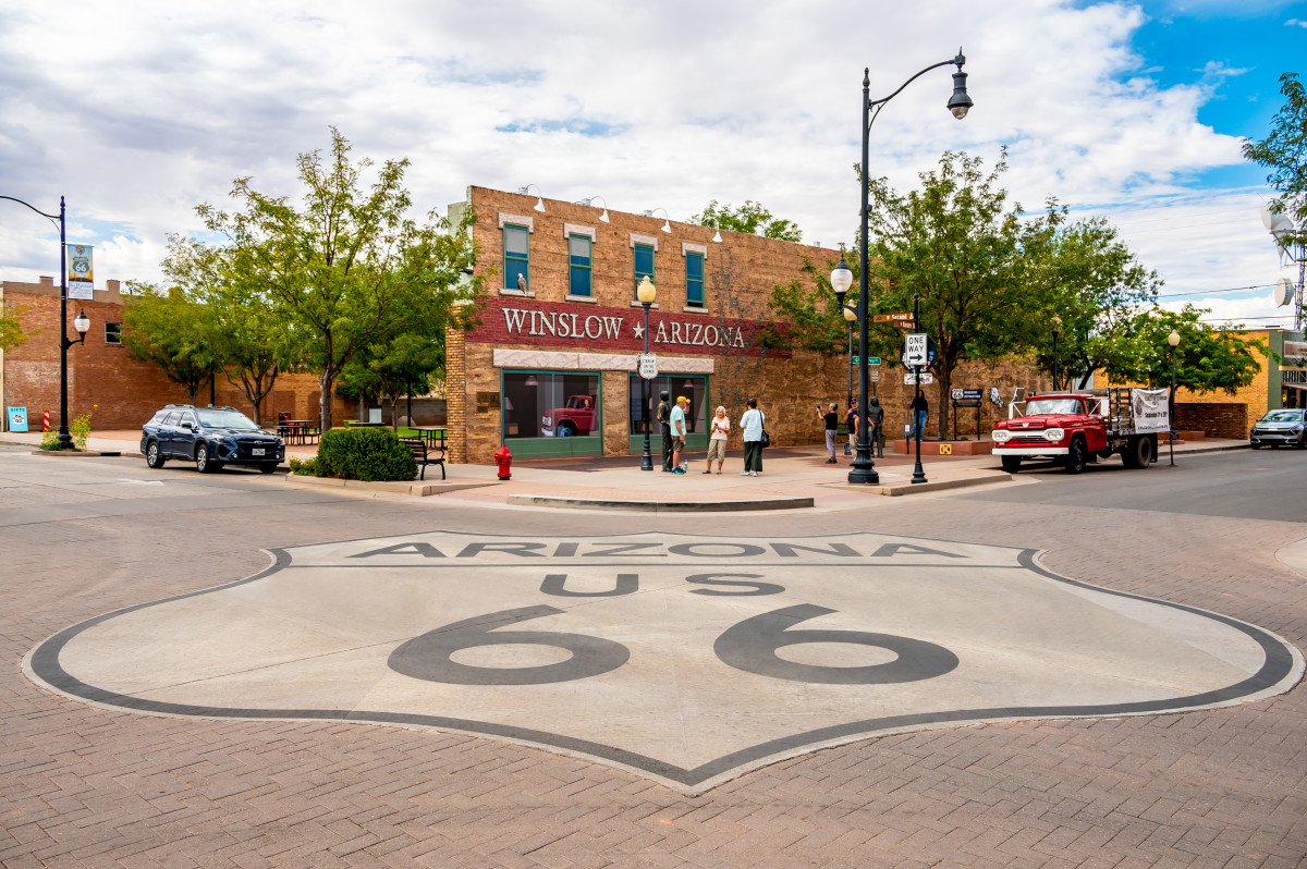 - Fahre durch Winslow, Arizona - eine Ecke ("Standin' on The Corner Park"), die durch den Song „Take it Easy“ der Eagles für immer in Erinnerung geblieben ist.