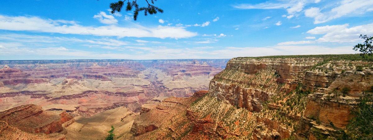 Im Nordwesten Arizonas gelegen gilt der Grand Canyon (rund 445 Kilometer lang und 1,83 Kilometer tief) als eines der Naturwunder der Welt. Der gut erreichbare South Rim ist die bekannteste Gegend, um den Grand Canyon zu erkunden.