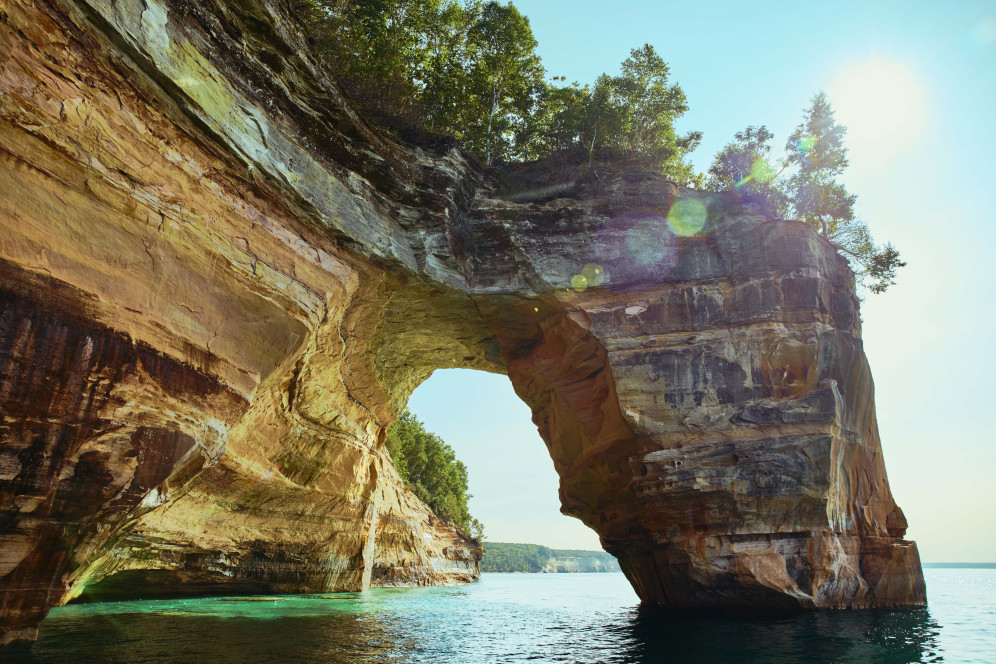 Munisingund in die Pictured Rocks National Lakeshore sind der nächste Stopp auf der Route. Bunte Sandsteinklippen, Wasserfälle und weite Ausblicke über den Lake Superior prägen das Bild. Eine Wanderung auf dem Chapel Loop führt durch Wälder, vorbei an Wasserfällen und entlang der spektakulären Klippen direkt über dem See. Abends sorgt ein Sonnenuntergang an einem der Strände des Nationalparks für unvergessliche Momente.