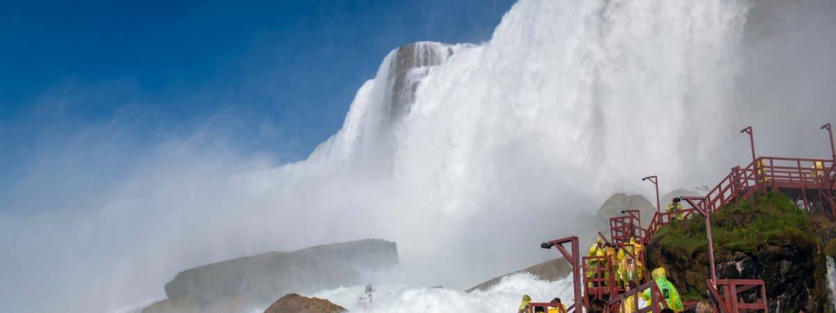 Die Cave of the Winds ist eine der aufregendsten Attraktionen in der Greater Niagara Region. Besucher werden mit einem Aufzug 175 Fuß hinunter zum Niagara River gebracht, wo sie auf Holzstegen nur wenige Meter von den tosenden Wasserfällen entfernt spazieren gehen können. Mit speziellen Ponchos und rutschfesten Sandalen ausgestattet, können Besucher die Gischt der Bridal Veil Falls auf sich regnen lassen und die unglaubliche Kraft der Wasserfälle hautnah erleben.