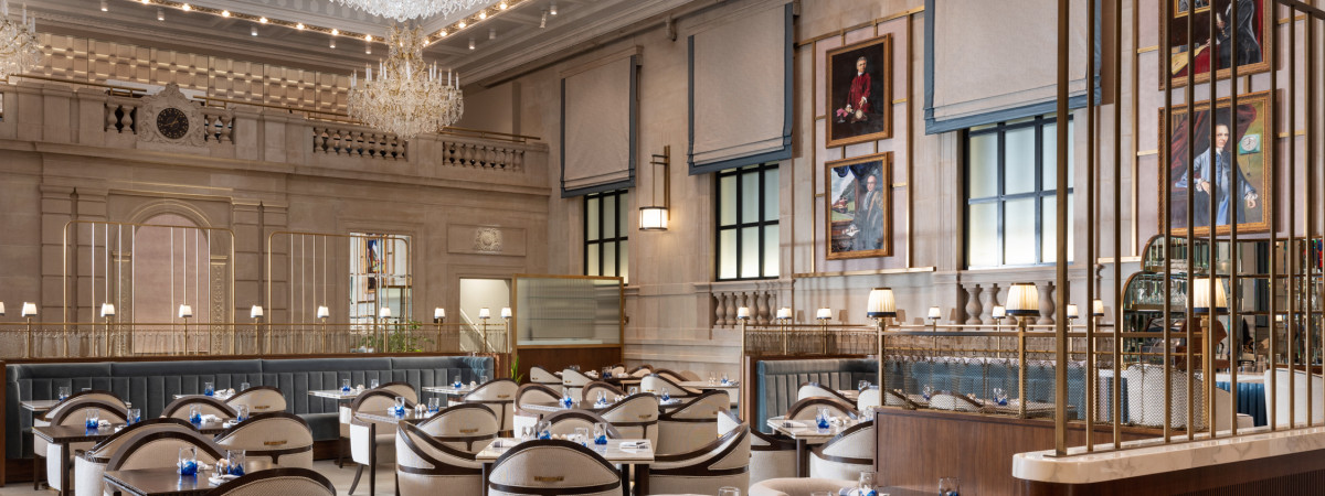 Raffles Boston, Bostons neuestes Luxushotel, mit einem atemberaubenden Blick auf den Charles River und die Skyline, einem reichhaltigen kulinarischen Angebot und raffinierten Cocktails. Das portugiesische Restaurant