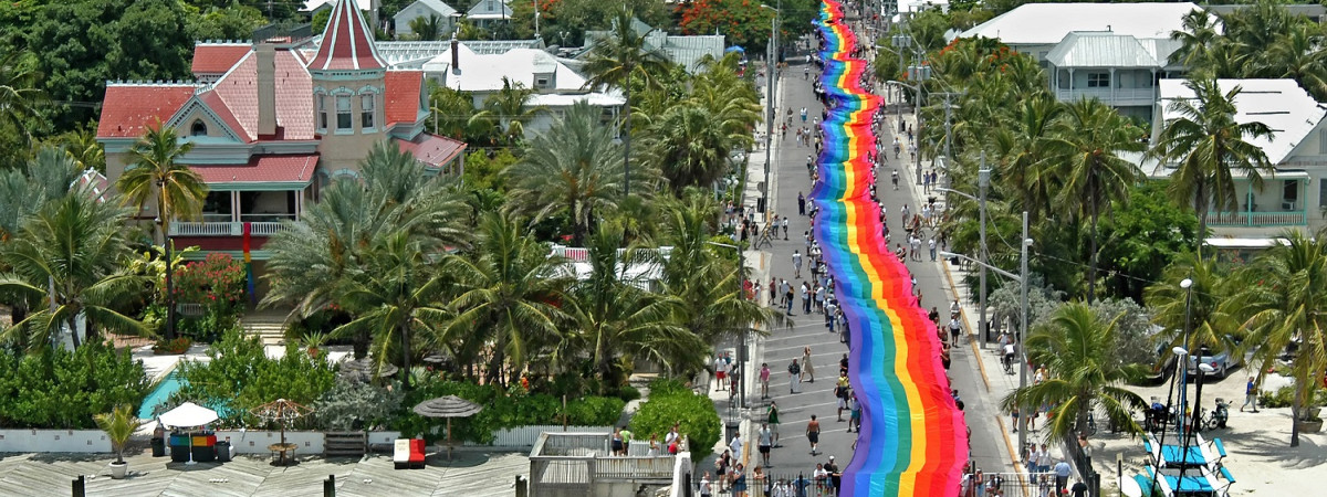 Bei der Key West Pride Parade, die jährlich wechselnde Mottos hat, spannen hunderte Feiernde eine zwei Kilometer lange Regenbogenflagge über die berühmte Duval Street vom Golf von Mexiko bis zum Atlantischen Ozean. Sie bildet damit die längste Regenbogenflagge der Welt, deren Teile auch bei anderen Pride-Paraden rund um den Globus zum Einsatz kommen.