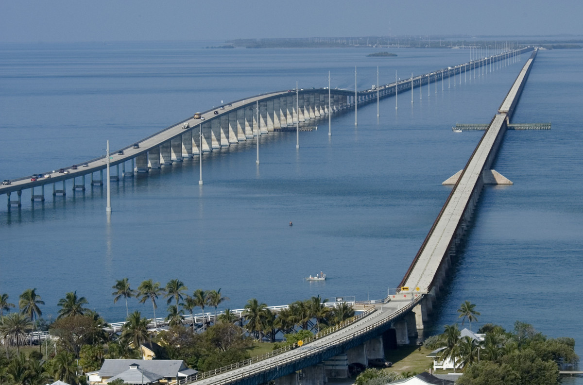 Overseas Highway, die die Inselkette der Keys verbinden – ein unvergessliches Erlebnis mit endlosen Blicken auf das türkisfarbene Wasser. Diese legendäre Route gibt es so nirgendwo sonst in den USA, und besonders die Fahrt über die Seven Mile Bridge lässt das Gefühl entstehen, direkt über das Meer zu gleiten.
