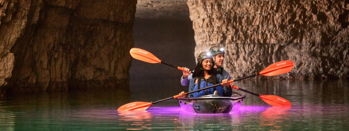 Outdoor Aktivitäten sind eines der wichtigsten Verkaufsargumente des Commonwealth of Kentucky. Ost-Kentucky ist gesäumt von einer grünen Hügellandschaft, den Ausläufern der Appalachen. Hier befindet sich auch die Red River Gorge, eines der besten Klettergebiete der Welt, im Daniel Boone National Forest. Kletter-Freunde erleben auf den Felsen des Red River Gorge den ultimativen Adrenalin-Kick. Besucher können ihre eigene Ausrüstung mitbringen oder einen vertrauenswürdigen örtlichen Führer oder Ausrüster engagieren, der ihnen hilft, die Wände zu erklimmen. Aber nicht nur Profisportler kommen auf ihre Kosten. Das Gebiet umfasst Wanderwege, Klettergebiete, Wasserwege und aussergewöhnliche Übernachtungsmöglichkeiten wie Lodges und Baumhäuser. Die Natural Bridge ist eines der beliebtesten Foto-Spots im Red River Gorge. Die Natural Bridge, ein natürlicher Sandsteinbogen, überspannt 24 m und ist 20 m hoch. Man kann sie sowohl zu Fuss als auch mit einer Seilbahn erreichen. Natural BridgeNur ein paar Kilometer südlich des Natural Bridge State Park befindet sich The Gorge Underground, eine der beliebten Höhlen in Kentucky. Und das zu Recht! In einer gefluteten Kalksteinmine finden unterirdischen Kajak- und Paddelboarding-Touren statt. Besucher paddeln in ihrem Kajaks durch die Grotte, während ihnen Führer den Weg weisen und die Geschichte der Höhle und ihre Überflutung erklären. Bei der Crystal Kayak Tour sind die Kajaks durchsichtig und mit farbigen LEDs ausgestattet, so dass sich ein wunderschönes Neonlicht in alle Richtungen ausbreitet! Wenn man Glück hat, kann man sogar die neu angesiedelten Regenbogenforellen sehen! Reservierungen werden empfohlen.