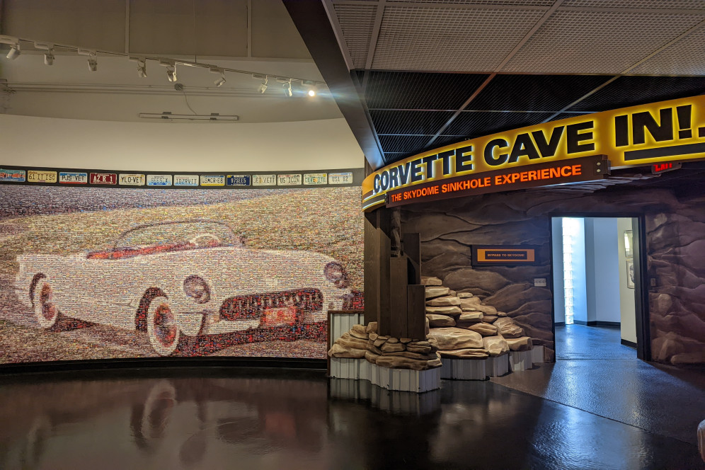 Der Skydome war auch der Schauplatz des berühmten Sinklochs, welches am 12. Februar 2014 international Schlagzeilen machte. In den frühen Morgenstunden brach der Boden unter dem Skydome ein. Glücklicherweise befand sich niemand im Gebäude, als es passierte, aber die Sicherheitskameras hielten den Vorfall auf Video fest. Die Besucherzahlen des Museums stiegen im selben Jahr sprunghaft an, da Menschen aus der ganzen Welt die verursachte Zerstörung mit eigenen Augen sehen wollten. Obwohl das Erdloch inzwischen zugeschüttet wurde, erregt die Geschichte weiterhin Aufmerksamkeit. Die in 2016 eröffnete, interaktive "Corvette Cave-In“-Ausstellung erzählt die Geschichte dessen, was an diesem Tag geschah, warum es geschah, welche Autos betroffen waren, wie sie geborgen wurden, was Karst-Landschaften und Höhlen sind und wie das Gebäude repariert wurde. Alle acht Corvettes, die dem Unglück zum Opfer fielen, sind ausgestellt, einige restauriert, andere so, wie sie aus dem Loch geborgen wurden. Auf dem Boden ist ein Umriss der Stelle zu sehen, an der sich das Sinkloch befand. Durch ein Fenster im Boden kann man sogar in die Höhle hineinschauen!