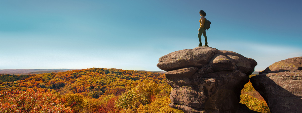 Ganz im Süden Illinois liegt der Shawnee National Forest, der vor allem für den Garden of Gods bekannt ist. Hier können mystisch auftürmende Sandsteinformationen erklommen werden, von deren Spitze aus sich spektakuläre Ausblicke auf Schluchten und Felsen bieten. Auf den zahlreichen Wander- und Naturpfaden passiert es nicht selten, dass Hirsche, Vögel und andere Wildtiere den Spaziergang begleiten.