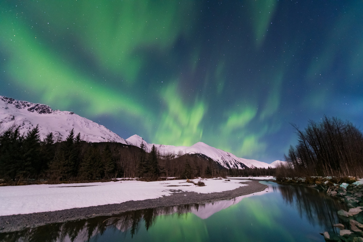 • Auch als Nordlichter bekannt, treffen geladene Teilchen auf die äußere Atmosphäre der Erde und sorgen für ein beeindruckendes Lichtspektakel am winterlichen Nachthimmel über Anchorage. Die Nordlichter können zwischen Mitte August und April beobachtet werden.
