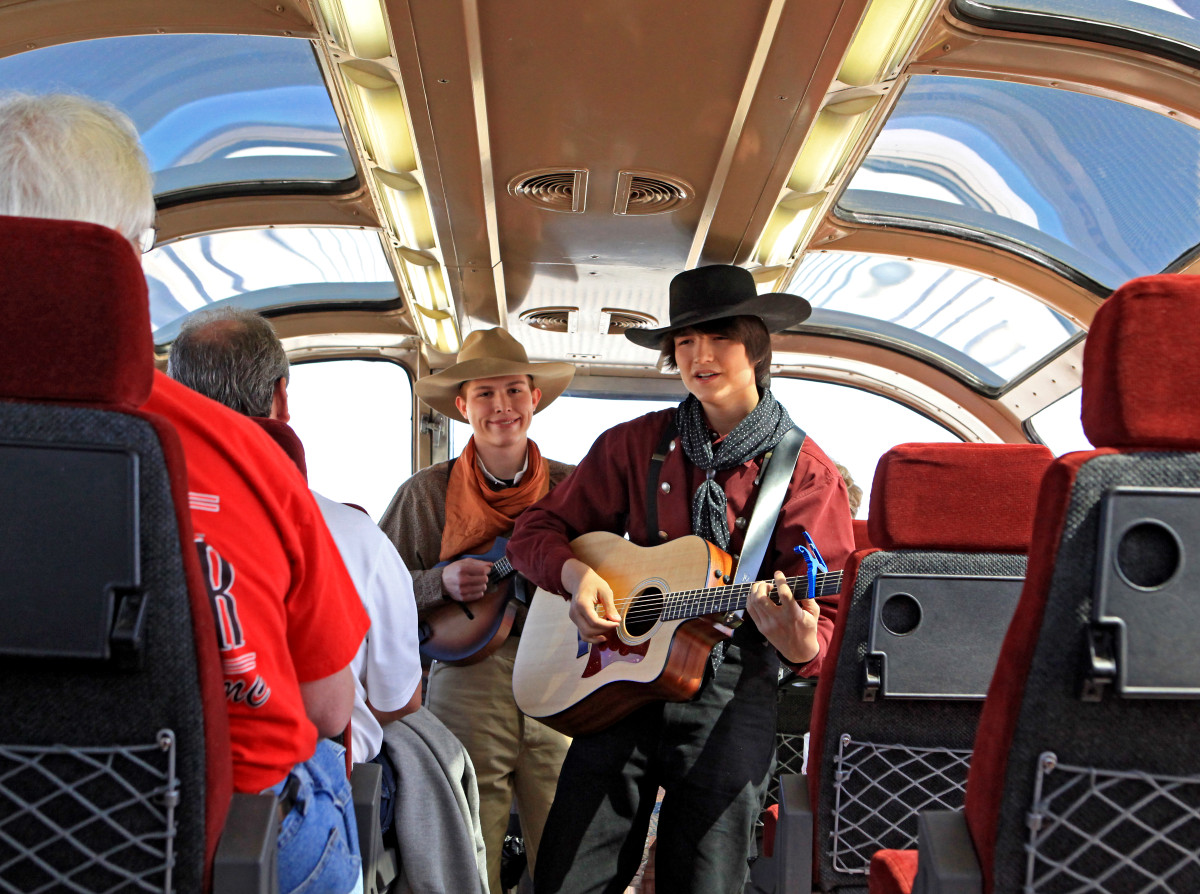 Die Grand Canyon Railway befördert seit 1901 Passagiere zum Grand Canyon. Der historische Zug fährt zweieinhalb Stunden lang von Williams, Arizona, zum South Rim des Grand Canyon und bietet unterwegs atemberaubende Ausblicke auf die Wüstenlandschaft. Sie werden von authentischen Charakteren und Musikern unterhalten, die den Alten Westen zum Leben erwecken. Jeden Morgen, bevor der Zug abfährt, treffen sich die Cataract Creek Gang und der Marshal am Williams Depot. Seien Sie später am Tag nicht überrascht, wenn diese Cowboys wieder ihre Streiche spielen ... Sie sind dafür bekannt, dass sie in ihrer Zeit schon den einen oder anderen Zugüberfall versucht haben.