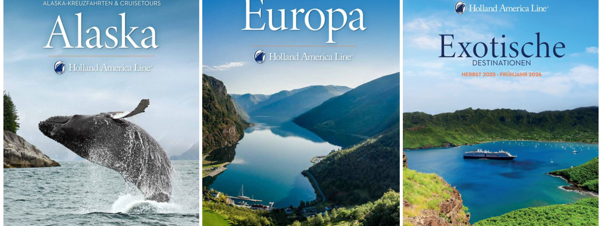 Die neuen deutschsprachigen Kataloge für die Destinationen Alaska 25, Europa 25 und Exotics 25/26 der Reederei Holland America Line sind ab sofort erhältlich.