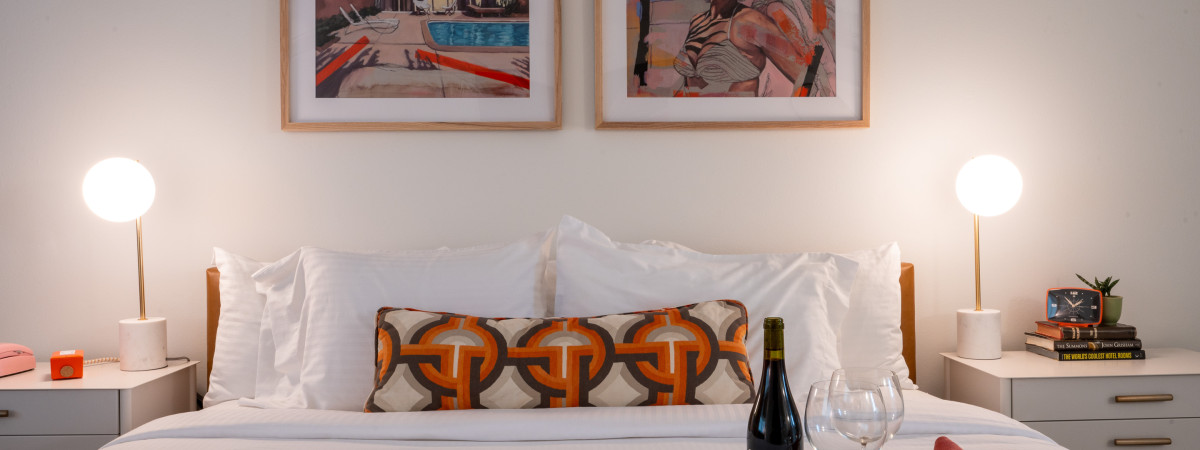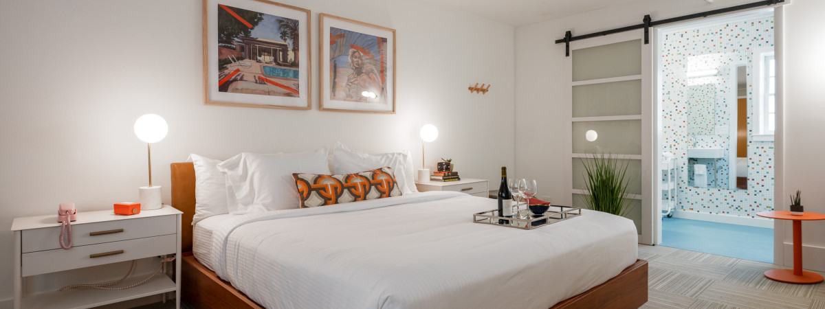 Little Mod Hotel in Charlottesville, Virginia finden sich viele Details, die den Charme der 1960er Jahre widerspiegeln. Nicht nur die Fliesen im Badezimmer, sondern auch der Schallplattenspieler im Zimmer nimmt Besucher mit auf eine Zeitreise. In Elementen wie der begehbaren Dusche, dem Flachbildfernseher sowie den hochwertigen Materialien fließen moderne Designkomponeten ein. Das Kreativteam des Bauprojekts wollte ein Hotelkonzept kreieren, welches so im Markt nicht existiert. Entstanden ist ein charmantes Boutique-Hotel im Retro-Chic direkt im Herzen des Studentenviertels. Nur wenige Schritte vom angesagten Viertel „The Corner“ gelegen, werden die Gäste ein Teil der lebendigen Kultur von Charlottesville. Für Gäste, die im Hotel speisen möchten, gibt es den Foodtruck „The Mod Pod“, der ganztägig Frühstück, Tacos oder auch ausgefallene Kreationen wie Schweinebauch mit einer Ahorn-Zitrusglasur serviert.