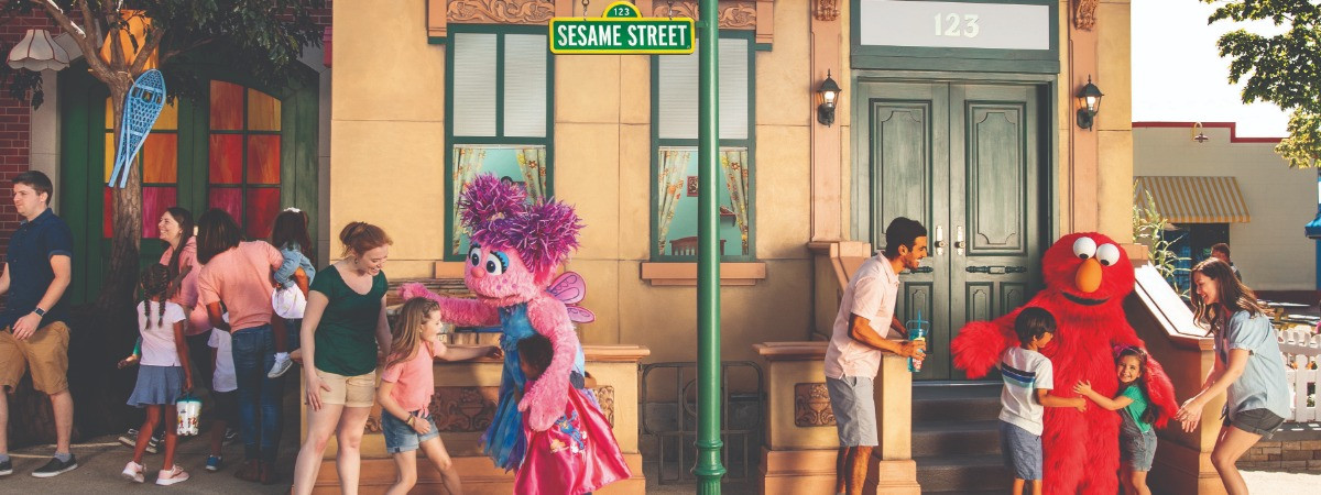 Entlang der Sesamstraße können Besucher Hoopers Laden, Abby Cadabbys Garten, Bibos Nest und den kultigen 123 Stoop entdecken. Interaktive Elemente runden das Erlebnis ab.