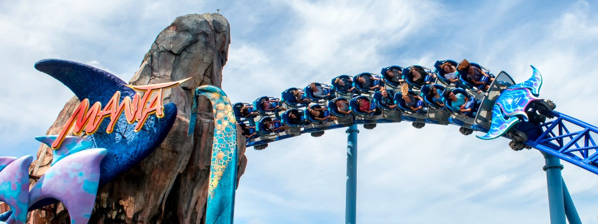 3,5 Minuten auf dem 864 Meter langen Launch Coaster bei Spitzengeschwindigkeiten von bis zu 69 Stundenkilometern. Jeder Mitfahrer kann sich hier wie ein Mantarochen fühlen, wenn er durch die Luft fliegt, taucht oder auf der Strecke gleitet.