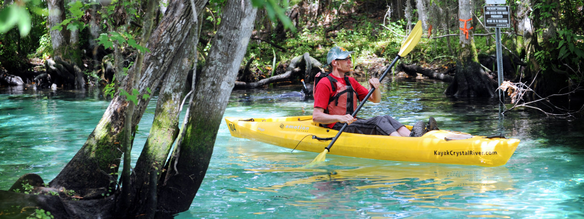 KAJAKING AUF KRISTALLKLAREM WASSER Willkommen im Labyrinth aus Flüssen, Quellen und Süßwasserseen: Vom Chassahowitzka River bis zu den Mangroveninseln des Saint Martins Marsh Aquatic Preserve und den offenen Gewässern der Tsala Apopka Lakes, durchzogen vom unglaublichen Withlacoochee River. Die schier endlos erscheienen Wasserstraßen warten darauf erkundet zu werden - egal ob mit Kajak, Paddelboard oder Kanu.