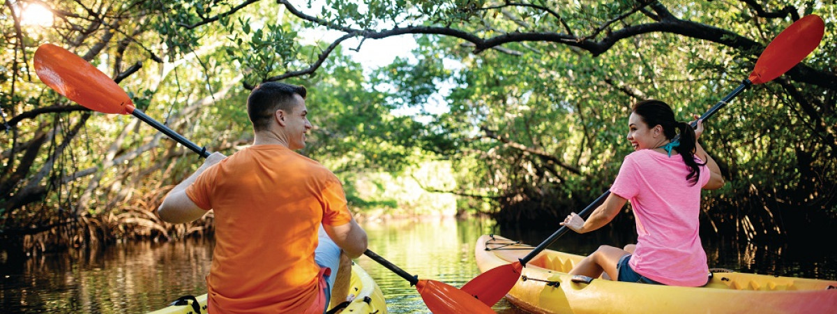1. Mit dem Kajak zu wilden Delfinen und sanften Manatees Mit Paddel und Kajak lassen sich die Naturschönheiten der Palma Sola Bay besonders gut erkunden. Geschützt durch die vorgelagerte Insel, ist das Wasser hier überwiegend ruhig. Im Frühling zeigt sich die Bay den Kanufahrern von einer besonders schönen Seite. Neben einem großen Delfinvorkommen und den Manatees präsentieren sich die heimischen schwarzen und weißen Pelikane auf dem Weg zu ihren südlicheren Brutstätten.