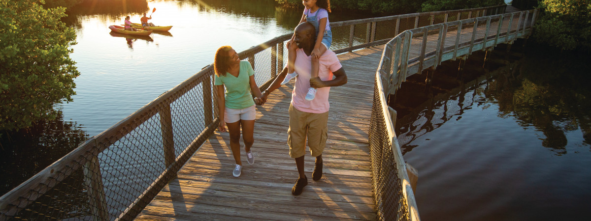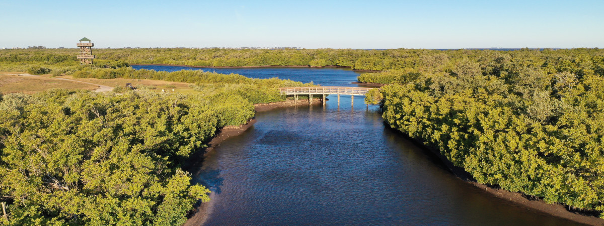 Versteckt im Nordwesten von Bradenton, umfasst das Robinson Preserve 682 Hektar Küstensalinen, Marschland und Mangrovenlebensraum in Kombination mit einem Wander- und Radweg sowie einem 40 Fuß hohen Beobachtungsturm direkt im Herzen des Parks. Das Reservat ist ideal für Kajakfahrer und bietet 4 Kilometer kristallblaue Wasserwege durch die natürlichen Mangroventunnel. Das Robinson Preserve ist besonders für Familien ein Erlebnis, da es das neu errichtete NEST (Zentrum für Natur, Erkundung, Wissenschaft und Technologie) bei Robinson-Schutzgebiet beherbergt. herbergt. Das NEST ist ein vielseitig nutzbarer Raum, der sich auf praktisches Lernen für alle Altersgruppen spezialisiert hat. Ein Kletterpark führt die Besucher in neue Höhen in die Baumkronen des Naturschutzgebietes. Seilbrücken, Kletternetze und Rutschen sorgen für Spaß und sind eine Herausforderung an die Geschicklichkeit. Der Baumwipfelpfad wurde für alle Altersgruppen angelegt und ermöglicht die Beobachtung der Watvögel und der Wildtiere im Naturschutzgebiet.