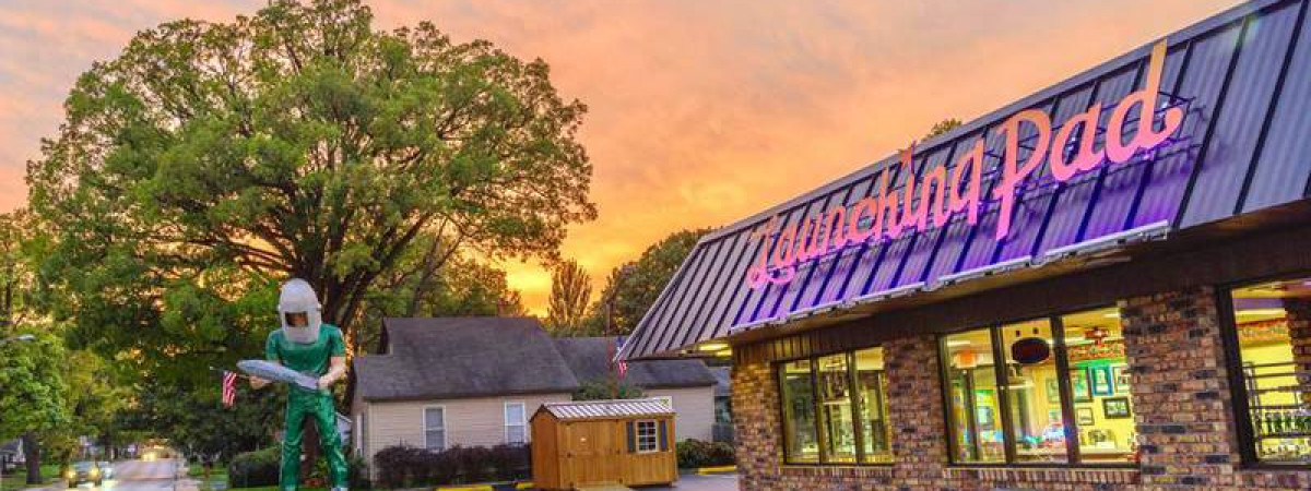 Die berühmte 9 Meter hohe Statue "Giant Gemini" steht vor dem Drive-in-Restaurant Lauchning Pad und ist ein Werberequisit aus den 60er Jahren. | provided by Heritage Corridor Destinations