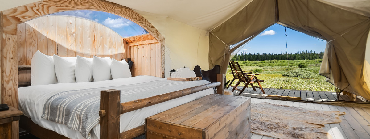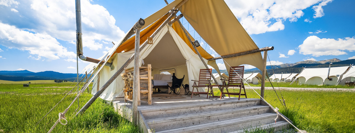 Mit freiem Blick auf die malerische Landschaft Montanas bieten die von der Safari inspirierten Unterkünfte von Under Canvas, Reisenden ein einzigartiges Outdoor-Erlebnis, während sie die Vielfalt des Yellowstone entdecken.