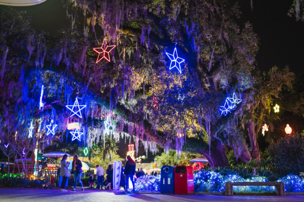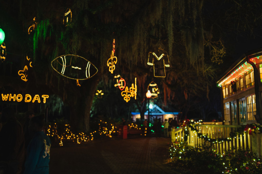 „Celebration in the Oaks“ im City Park ist die Holiday-Tradition in New Orleans. Ab Ende November werden uralte Eichen, Wege und Fahrgeschäfte mit über Hunderttausenden Lichtern geschmückt. Du fährst mit der kleinen Parkeisenbahn durch leuchtende Tunnel, läufst durch fantasievolle Lichtinstallationen und kannst – je nach Jahr – zwischen Drive-Through und Walking-Tour wählen.