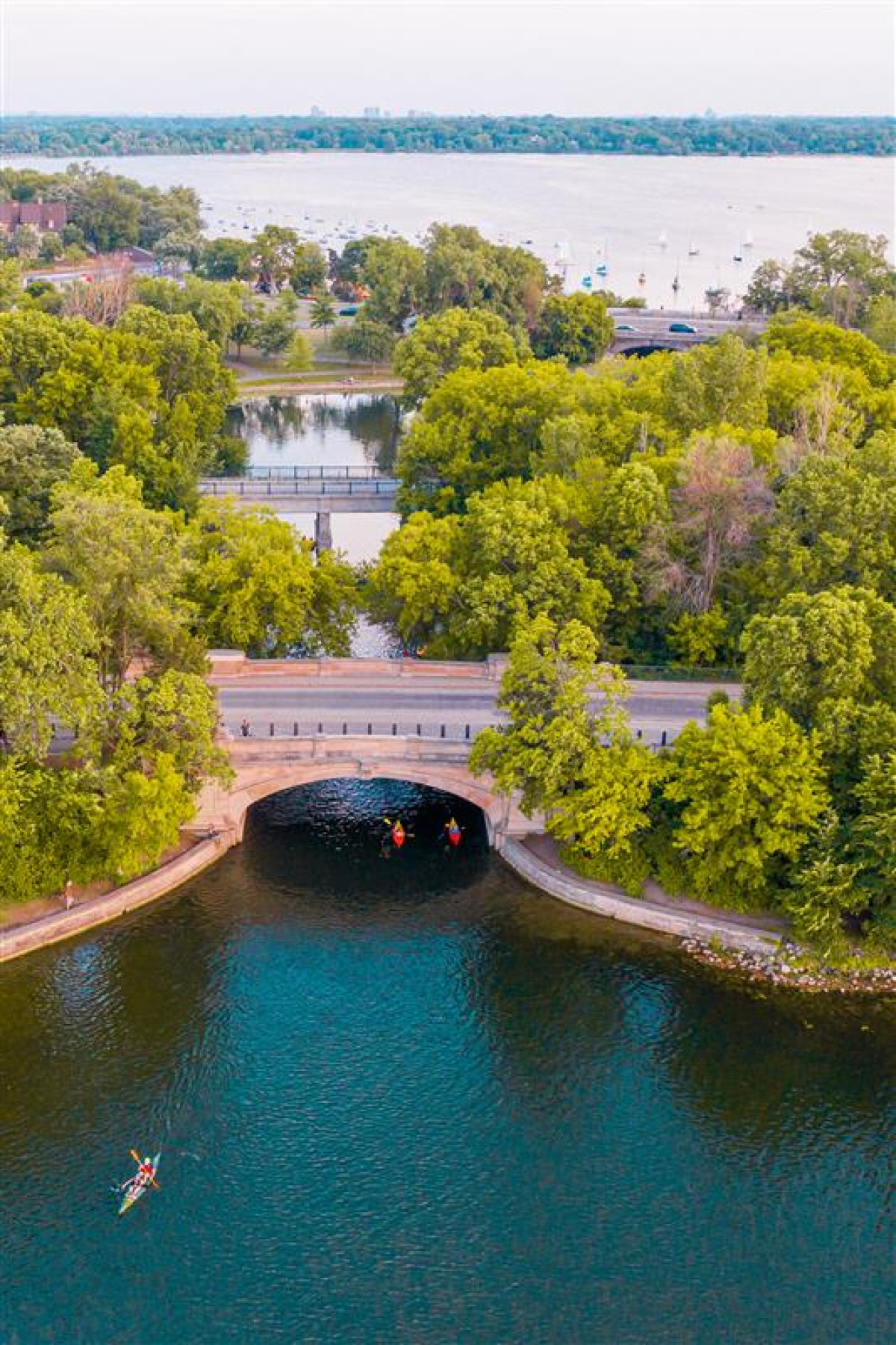 Fünf miteinander verbundene Seen – Lake Harriet, Bde Maka Ska, Lake of the Isles, Cedar Lake und Brownie Lake – bieten perfekte Bedingungen zum Radfahren, Paddeln oder einfach zum Entspannen am Wasser.