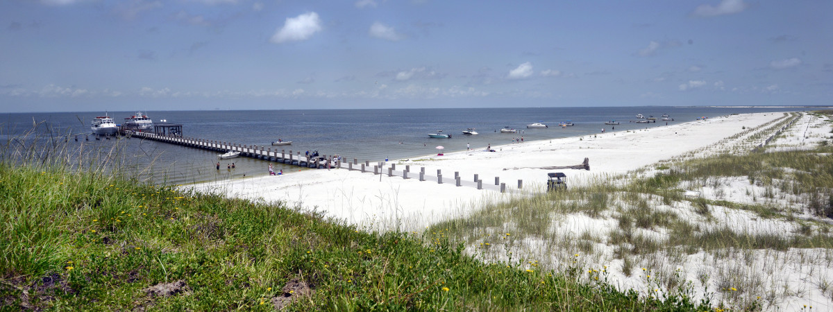 Nationalparkbesuch und Strandtag in einem: Ship Island Excursions ermöglichen Tagesfahrten zu der Insel Ship Island im Golf von Mexico. Etwa 45 Minuten dauert die Überfahrt aus Gulfport in Coastal Mississippi, oft begleitet von Delfinen. Am Ziel warten wirklich unberührte Natur und weißer Sand - menschengemacht sind auf der Insel des Nationalparkgebiets Gulf Shores National Seashore nur der Ziegelbau des Fort Massachusetts aus dem Bürgerkrieg, ein kleiner Sanitärbau, eine Hütte der Rettungsschwimmer und ein winziger Laden mit Liegestuhl- und Sonnenschirmverleih.
