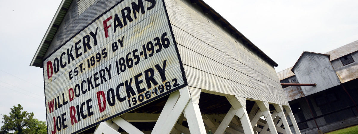 Dockery Plantation, einer der großen Baumwollplantage im Delta. Vor hundert Jahren hatten die schwarzen Landarbeiter dort vergleichsweise gute Lebensbedingungen, was ihnen abends Zeit für den Blues ließ. So bekamen Blueslegenden wie Charley Patton, Howlin‘ Wolf und Henry Sloan ihren Start. Man geht einfach auf das Gelände, auch in die Scheunen und hört auf Knopfdruck Erklärungen und Blues aus Lautsprechern. Unübersehbar auch das blaue Schild „Birthplace of the Blues?“. Es erzählt von dieser Geschichte und gehört zum