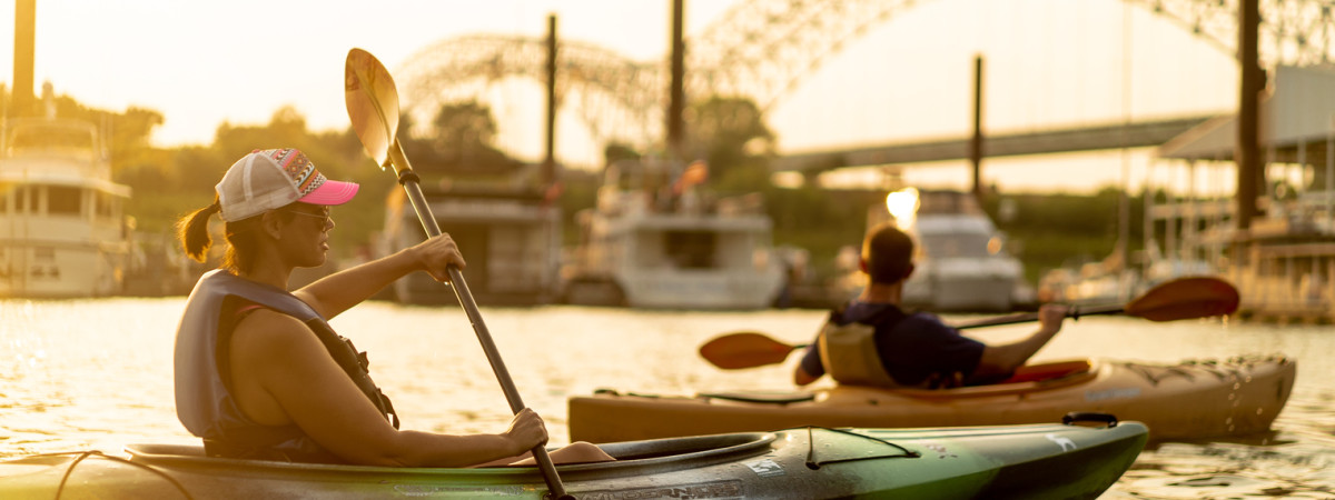 In der Metropole am größten und mächtigsten Fluss der USA darf eine Fahrt auf dem Wasser nicht fehlen. Wer’s entspannt und zum Beispiel musikalisch untermalt mag, bucht eine Fahrt mit den Ausflugsschiffen Memphis Riverboats, deren Angebote zahlreich und thematisch vielfältig sind. Aktive Wasserratten steigen in die Kajaks und Kanus von Mississippi River Expeditions und paddeln unvergesslich mit top ausgebildeten Guides in den Sonnenuntergang.