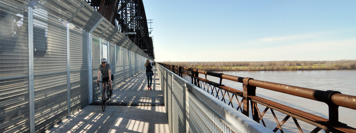 Wer einmal auf der längsten Fußgängerbrücke über den Mississippi nach Arkansas spaziert, geradelt, gerollert oder gelaufen ist, vergisst den Blick auf Memphis‘ Skyline nie wieder. Big River Crossing wurde im Jahr 2016 an die Harahan-Eisenbahnbrücke von 1916 montiert. Den an dieser Stelle rasend dahinfließenden Strom unter sich und die schweren Güterzüge neben sich zu spüren, ist ein umwerfendes Erlebnis.