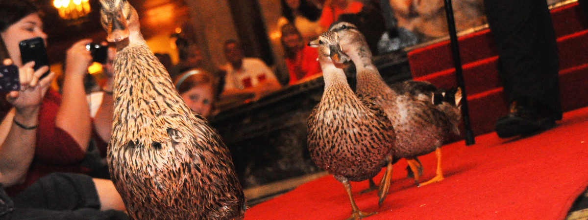 Die Enten des Grandhotels The Peabody schwimmen tagsüber im Brunnen der Lobby und übernachten auf dem Dach. Morgens punkt elf fahren sie im Aufzug hinab und watscheln auf einem roten Teppich zum Wasser, begleitet vom farbenfroh uniformierten „Duckmaster“ des Hotels bei Marschmusik von John Philip Sousa. Um Schlag 17.00 Uhr dann das ganze rückwärts. Man sollte früh genug dort sein, um freien Blick auf das Spektakel zu finden.