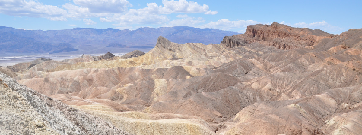 Lang gezogene Salzseen und ausgetrocknete Flusstäler zeugen von der gnadenlosen Hitze im Sommer und den extrem seltenen Niederschlägen. Der “Golfplatz des Teufels” ist eine enorme Salzpfanne am Fuße des Death Valley. Der einst 10 Meter tiefe See besteht aus Mineralien, die im Wasser aufgelöst und zurückgelassen wurden. Zurück blieb der Badwater Basin. Die komplette Fläche bleibt trocken und erlaubt somit dem Wetter verschiedene Formen zu gestalten.
