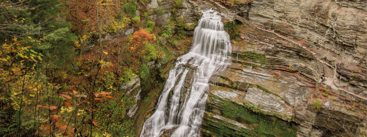 Ithaca is home to the tallest single waterfall east of the Rocky Mountains. The 215-foot cascade of Taughannock Falls is three stories higher than Niagara Falls. The city offers year-round experiences, from winter adventures, city festivals, and concerts throughout the year to the beautiful colors of the fall foliage season, all accompanied by the quirky atmosphere that is so typical of Ithaca. It
