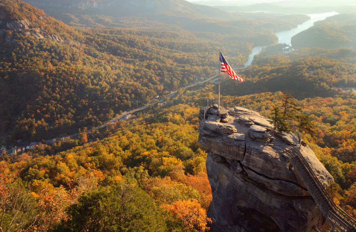 Filmfreunde kennen diesen Park aus „der letzte Mohikaner". Beliebteste Stelle ist der Aussichtspunkt auf dem Namensgebenden Chimney Rock, der auch über einen Aufzug erreicht werden kann. Von hier aus können Besucher ca. 120 Kilometer weit in alle Richtungen blicken und sich auf machen den Park auf einem der zahlreichen Wanderwege kennenzulernen.
