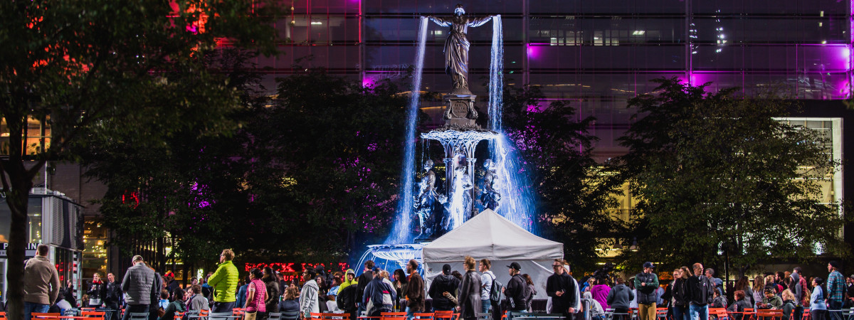 Der zentrale Punkt der Stadt ist der Fountain Square. Der Platz ist zu jeder Jahreszeit der perfekte Ausgangspunkt für ein Cincinnati-Abenteuer! Der Fountain Square in Cincinnati ist ein lebhafter, historischer Platz und seit 1871 das symbolische Zentrum von Cincinnati. Es ist ein beliebter Treffpunkt für sowohl Einheimische als auch Besucher. Das Herzstück des Platzes ist der atemberaubende Genius of Water-Brunnen. Der Brunnen wurde von den deutschen Künstlern August von Kreling und Ferdinand von Miller in der Königlichen Bronzegießerei Bayern entworfen. Ihr Ziel war es, einen Brunnen zu entwerfen, der es mit den großen Brunnen Europas aufnehmen konnte, der aber eher die Menschheit als Fantasiewesen und mythische Gottheiten verherrlichen sollte. Mit dem Geschäftsmann Henry Probasco hatten sie einen Sponsoren gefunden, der den Brunnen seinem verstorbenen Schwager widmete. Das ursprüngliche Miniaturmodell befindet sich heute im Cincinnati Art Museum.