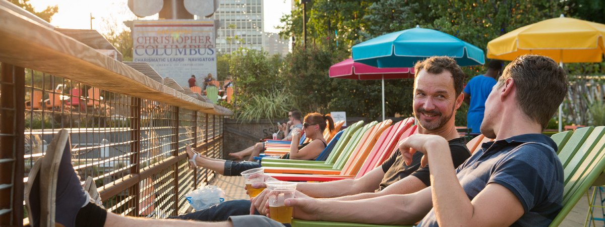 Neben sogenannten Pop-Up-Events an allen möglichen Orten in der Stadt, ist Philadelphia bekannt für Pop-Up-Parks, die während der Sommerzeit wie aus dem Nichts entstehen und Groß & Klein begeistern. Spruce Street Harbor Park_Credit Matt Stanley Dazu zählt zum Beispiel der Spruce Street Harbor Park direkt an der Uferpromenade des Delaware River. Hier gibt es von Mai bis September schwimmende Gärten, Lounges und zahlreiche Hängematten, die sich perfekt zum Entspannen eignen. Eine Abkühlung von der Hitze bieten die verschiedenen Brunnen sowie ein schwimmender Biergarten. Abends leuchtet das Flussufer wie ein fantastisches Meer aus bunten Farben und lädt ein zum Verweilen und Spaß haben.