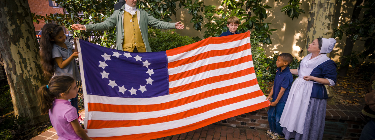 Die erste amerikanische Flagge wurde 1777 in Philadelphia von Betsy Ross genäht. Heute kannst du das Betsy Ross House besuchen, wo du mehr über die Geschichte dieser berühmten Flagge und das Leben der Frau, die sie genäht hat, erfahren kannst.
