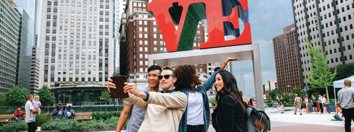 • Top Selfie-Spot: Die LOVE Skulptur im LOVE Park auf dem Kennedy Plaza. Die heute ikonische Skulptur des Künstlers Robert Indiana wurde zu Philadelphias 200. Geburtstag im Jahre 1976 in der Stadt aufgestellt.
