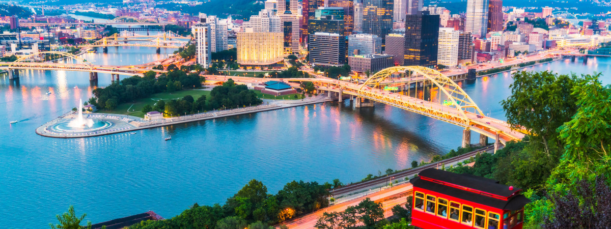 Pittsburgh ist die zweitgrößte Stadt in Pennsylvania, ist von Flüssen umgeben und verfügt über ein lebendiges Kulturviertel sowie ein Andy Warhol Museum und ist auch die Heimat großer Sportmannschaften.