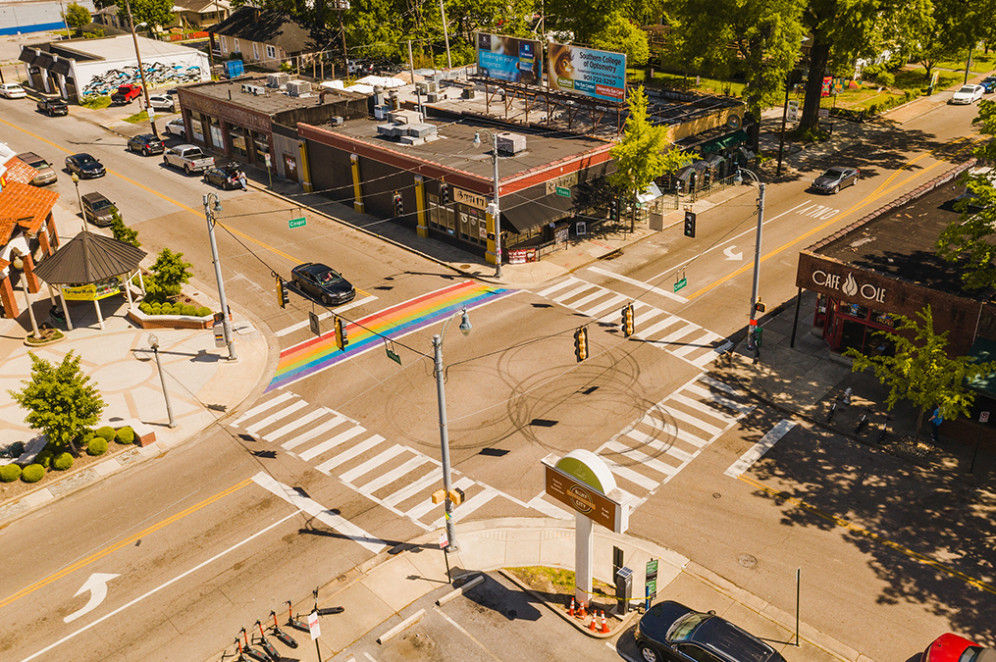 Broad Avenue Arts District: Essen, trinken und shoppen an der Broad Avenue - inhabergeführte Läden für Kunst, Wohnkultur, Handwerk, Fahrräder, Gitarren und Mode, in den Restaurants Zutaten direkt von der Farm, eine Brauerei und Gelegenheit zum Sitzen im Freien.