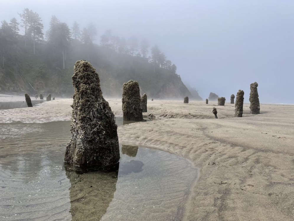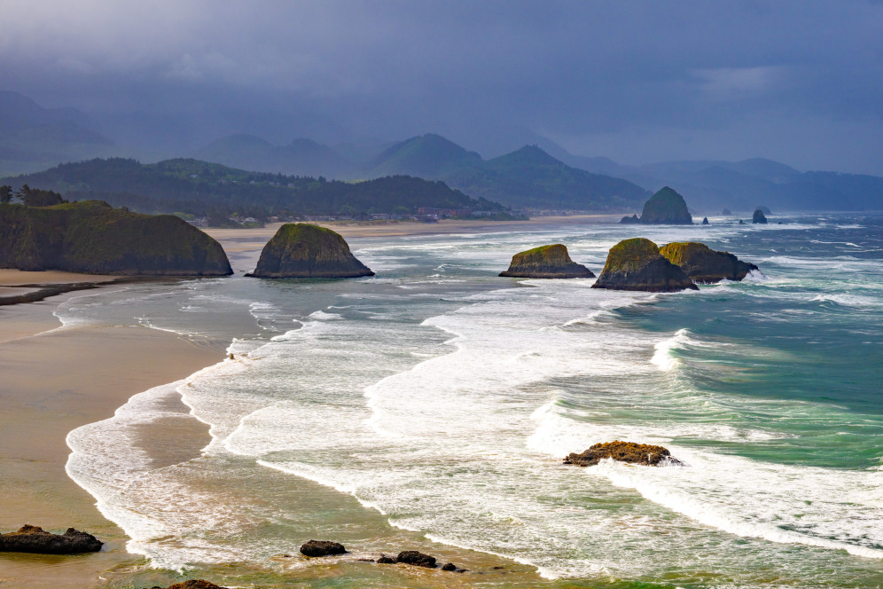 Cannon Beach mit dem markanten Haystack Rock ist das Postkartenmotiv schlechthin – doch abseits der Massen zeigt sich die wahre Schönheit. Am Hug Point etwa kann man bei Ebbe zu Höhlen und Wasserfällen laufen, die sich direkt ins Meer ergießen. Weiter südlich wartet Yachats, ein verschlafener Ort, in dem man die rohe Kraft des Ozeans spürt, wenn die Wellen gegen die schwarzen Lavaklippen donnern.Cannon Beach mit Haystack Rock by Martin WeinEin Highlight weiter südlich ist der Face Rock State Park in Bandon. Vom Aussichtspunkt blickt man auf bizarre Felsformationen, die aus dem Nebel auftauchen wie Wächter des Meeres – darunter der sagenumwobene „Face Rock“, in dem man mit etwas Fantasie das Profil einer Frau erkennt. Wenn bei Sonnenuntergang das Licht über die Brandung gleitet und die Möwen im Wind kreisen, wirkt die Szenerie fast magisch.