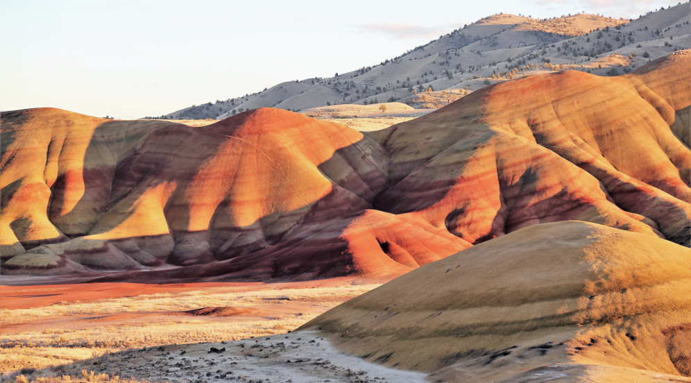 Je weiter man Richtung Osten fährt, desto stärker wandelt sich Oregon. Die Wälder weichen karger Steppe, bis plötzlich die Painted Hills auftauchen – Hügel, die in Rot, Gelb und Ocker leuchten, als hätte jemand mit riesigen Pinseln über die Landschaft gestrichen. Die Farben ändern sich mit dem Sonnenstand, morgens und abends sind sie am intensivsten.Painted Hills by Central Oregon Film OfficeNoch einsamer ist es am Steens Mountain im Südosten des Staates. Kaum ein Besucher verirrt sich hierher. Eine Schotterstraße windet sich auf fast 3000 Meter Höhe, von wo der Blick weit in die Alvord Desert reicht. Die trockene Salzebene ist ein Ort, an dem man das Gefühl hat, allein auf der Welt zu sein. Wer hier übernachtet, erlebt einen Sternenhimmel, wie man ihn in Europa kaum noch kennt.